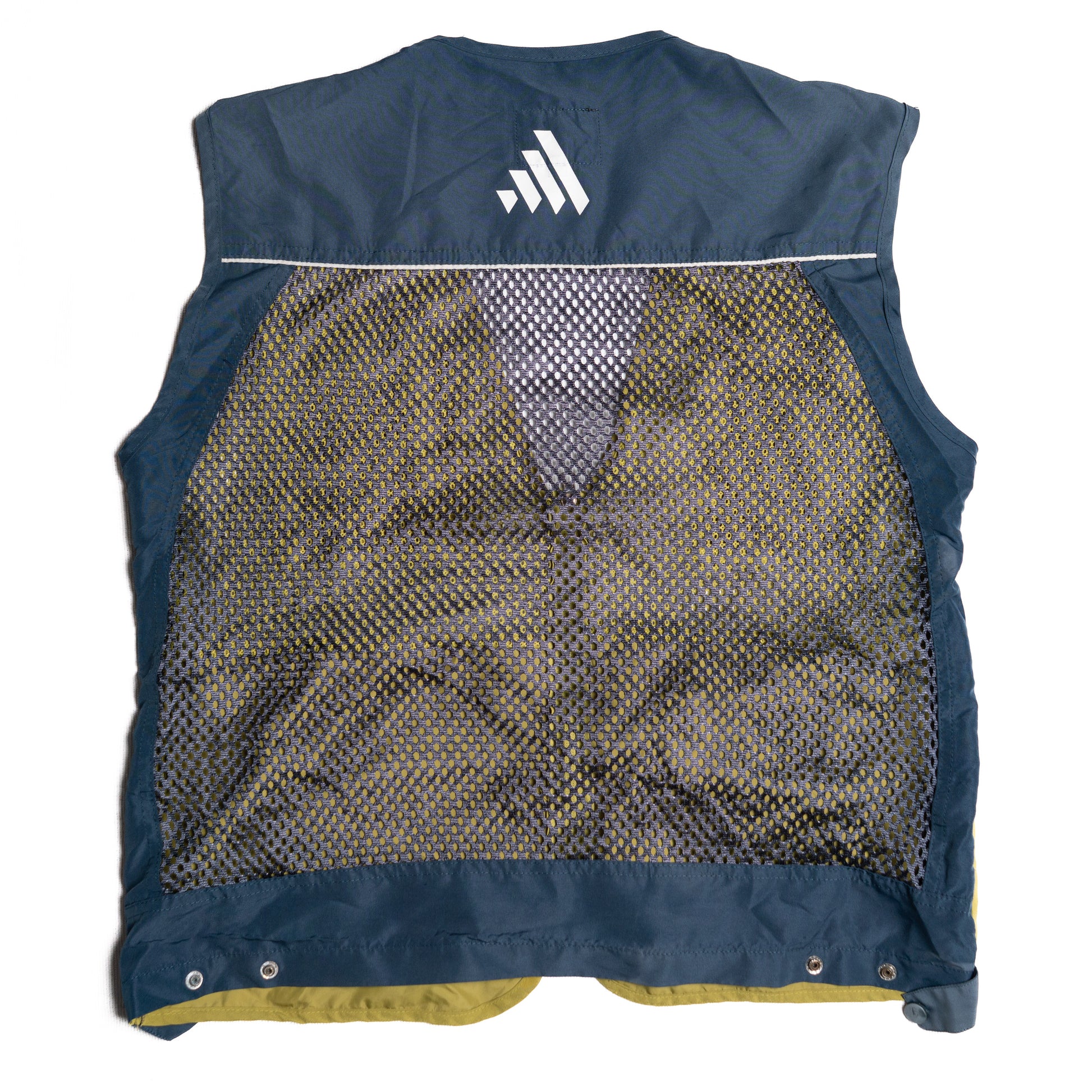 Diese einzigartige Utility-Weste wurde aus Kleidungsstücken gewonnen, die als Textilmüll in Ghana gelandet sind. Vor Ort wurde sie geborgen, gereinigt, repariert und kreativ neu zusammengesetzt.